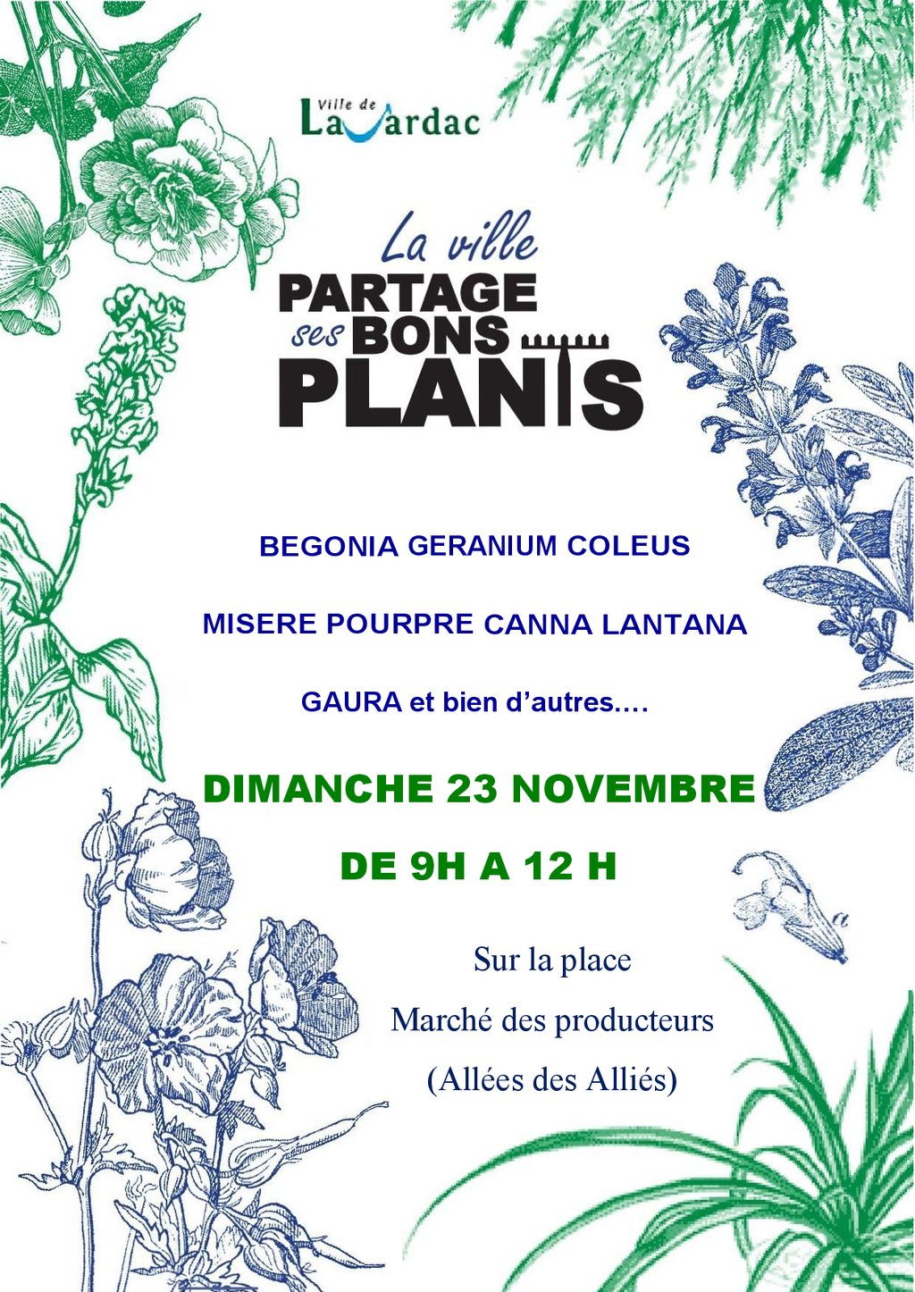 Distribution par la ville de BEGONIA, GERANIUM, COLEUS, MISERE POURPRE, CANNA, LANTANA, GAURA et bien d’autres…