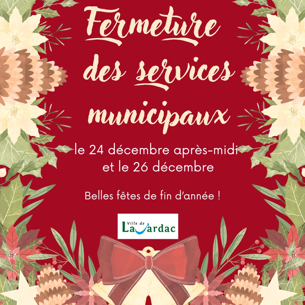 Les services municipaux seront fermés le mercredi 24 décembre après-midi et le vendredi 26 décembre toute la journée.