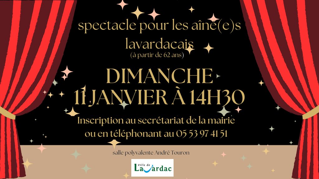 Dimanche 11 janvier à 14 h 30 : spectacle pour les aîné(e)s lavardacais (à partir de 62 ans) à l salle polyvalente André Touron.