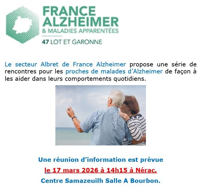 Si vous êtes intéressé(e), une réunion d’information aura lieu le mardi 17 mars à 14h30 au Centre Samazeuilh à Nérac (salle Antoine Bourbon 1er étage).