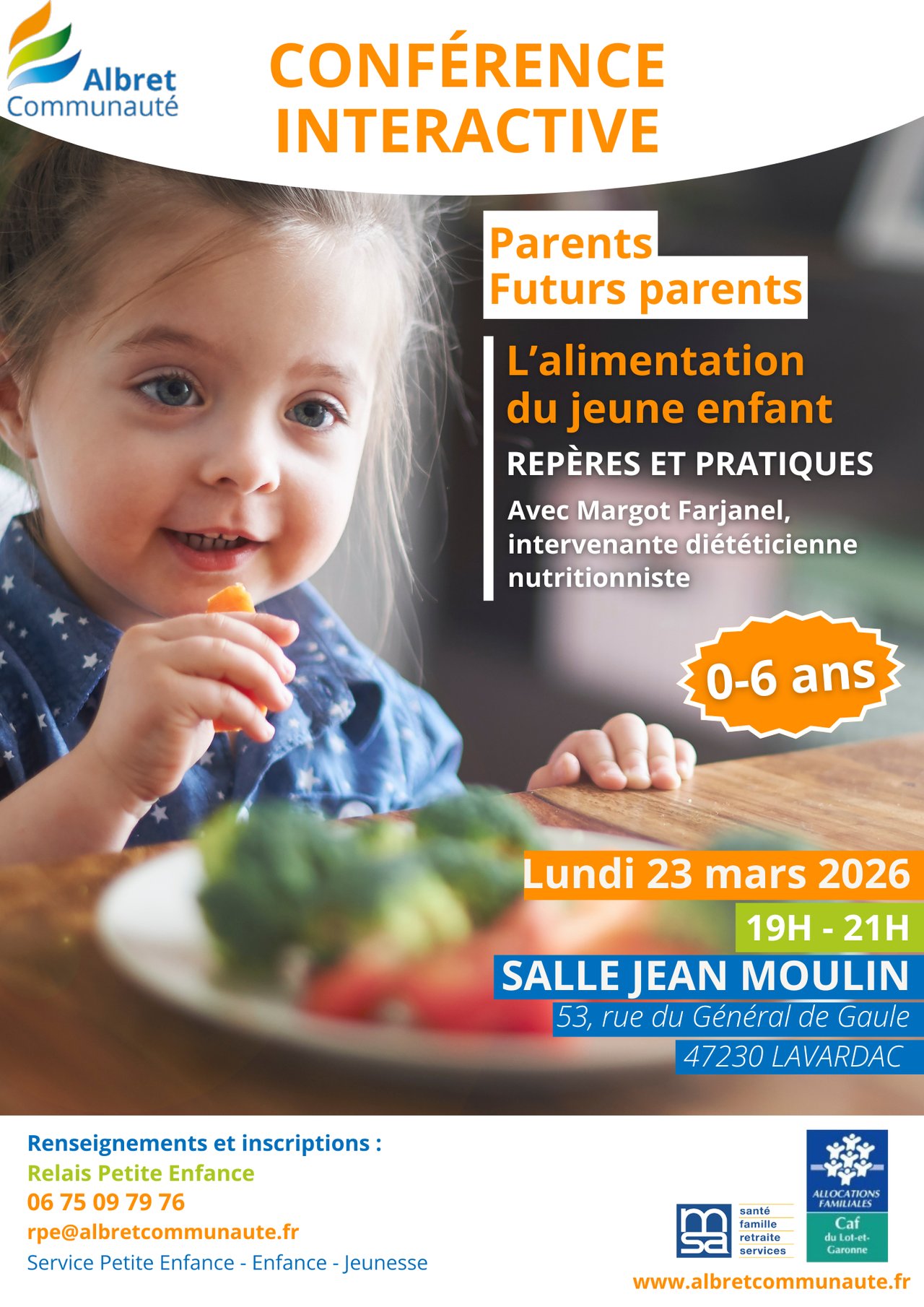 Parents et futurs parents, venez échanger avec une diététicienne-nutritionniste lors d’une conférence dédiée à l’alimentation du jeune enfant.