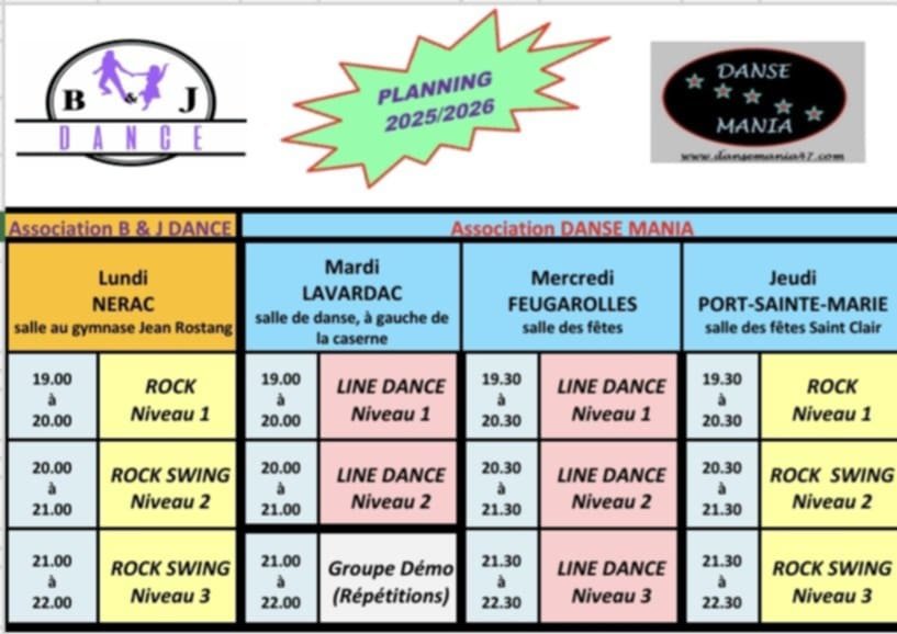également reprise des cours rock swing lundi 15 septembre à Nérac (mêmes profs, avec l'association B&J DANCE)